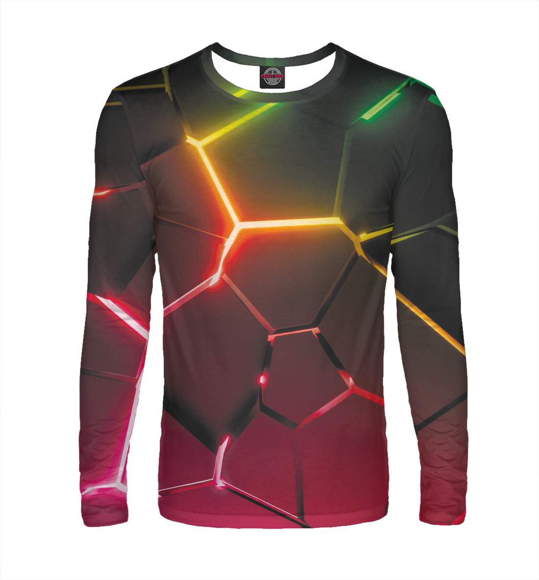Мужской лонгслив с принтом «Разлом ярких неоновых плит - геометрия»