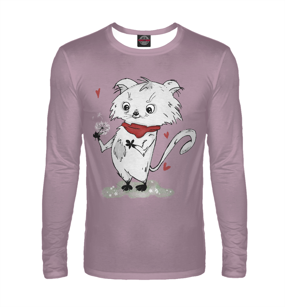 Мужской лонгслив с принтом «Романтичный котик (розовый фон)»