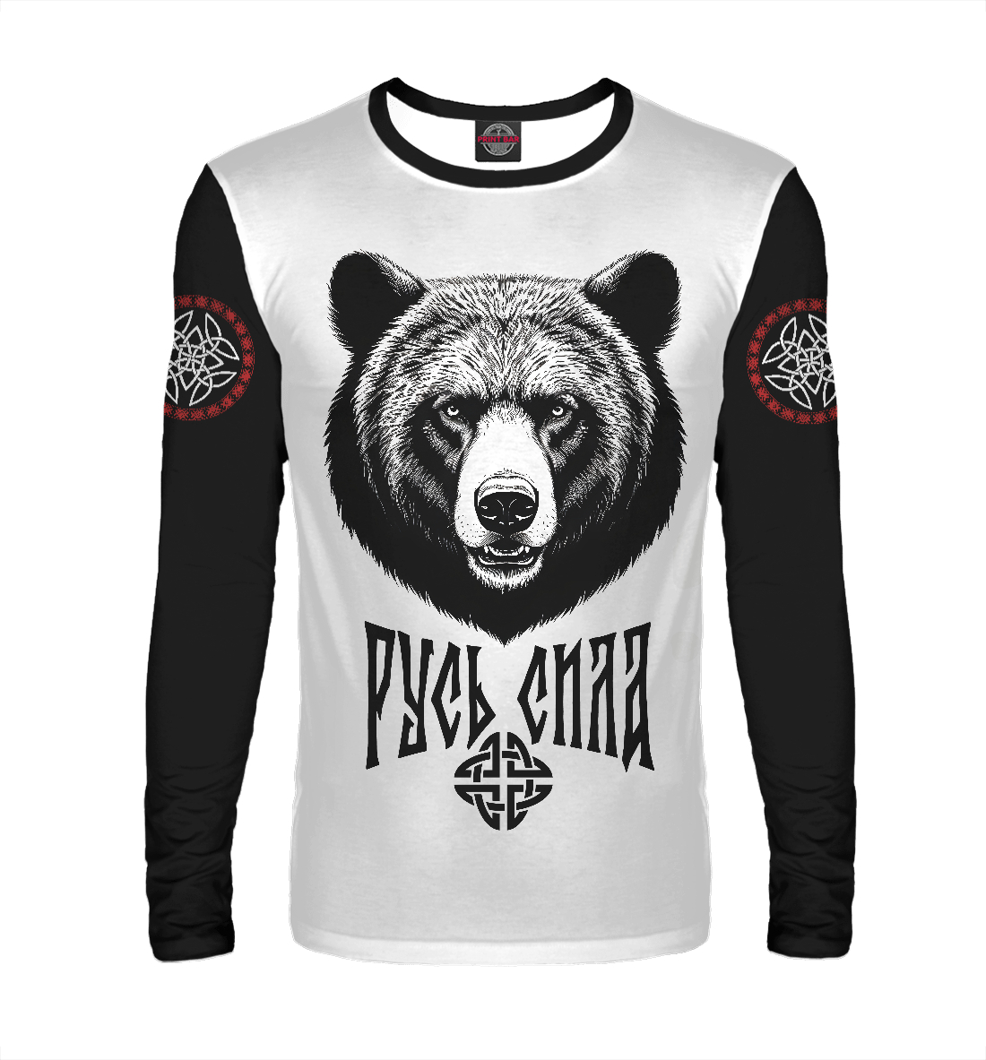 Мужской лонгслив с принтом «Русский медведь / Русь сила»