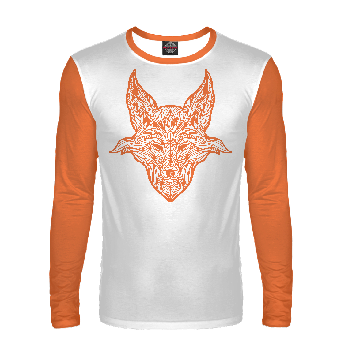 Мужской лонгслив с принтом «Рыжая лиса с узорами»