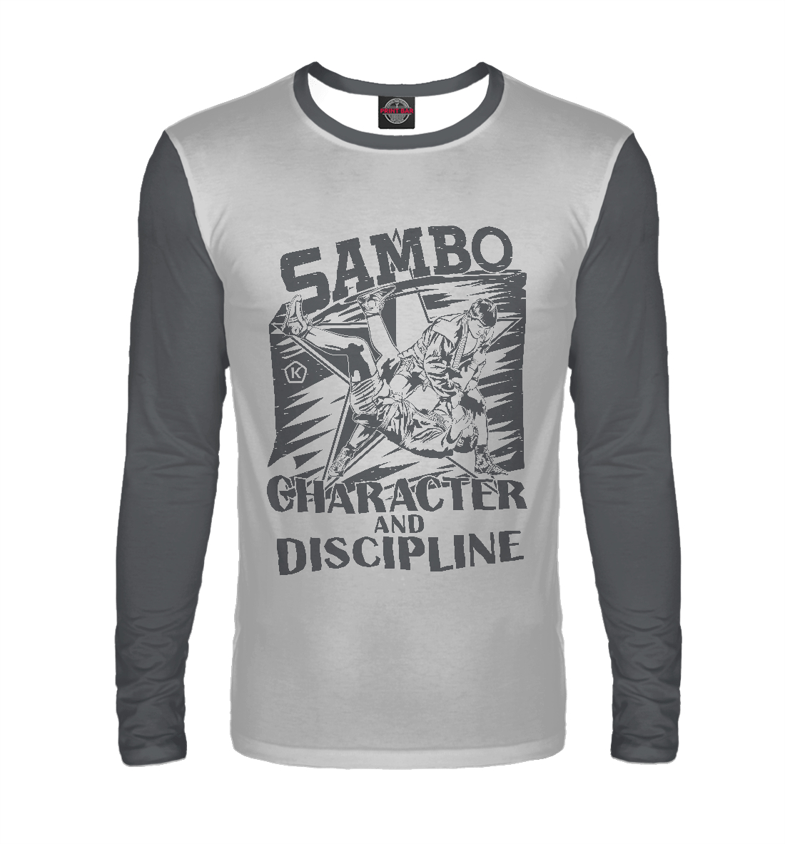 Мужской лонгслив с принтом «Самбо - Character and discipline»