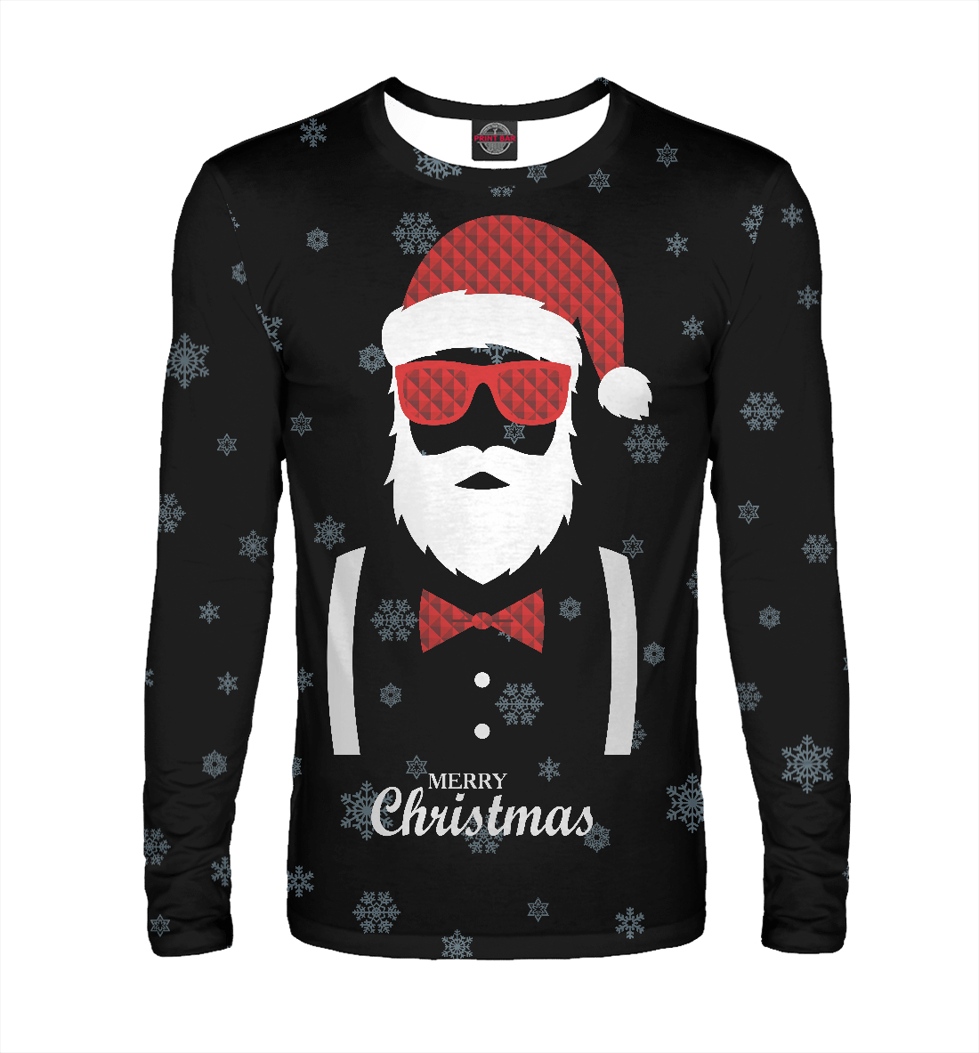 Мужской лонгслив с принтом «Санта- хипстер»