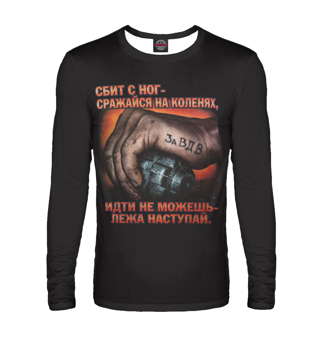 Мужской лонгслив с принтом «Сбит с ног - сражайся на коленях!»