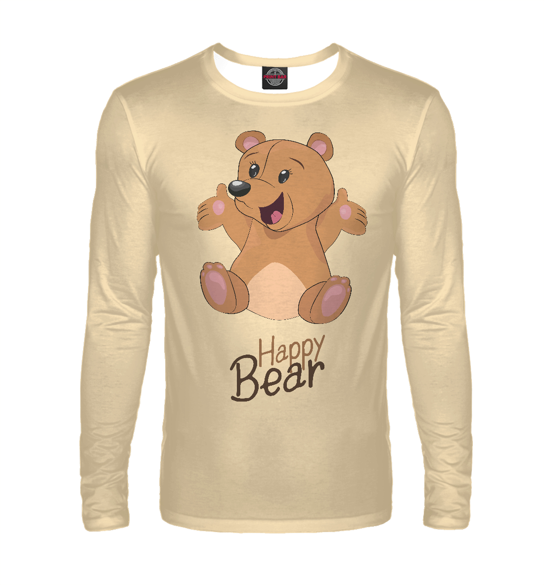 Мужской лонгслив с принтом «Счастливый Мишка»
