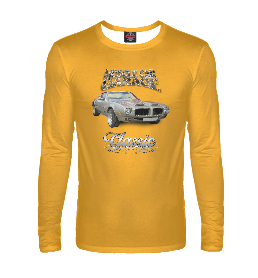 Мужской лонгслив с принтом «Серый Muscle car на жёлтом фоне»