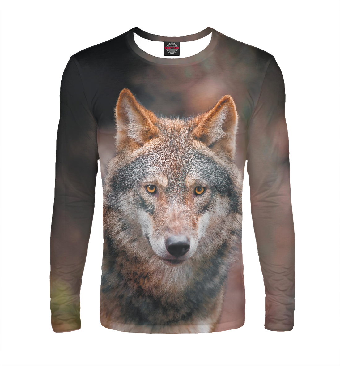 Мужской лонгслив с принтом «Серый волк в лесу»