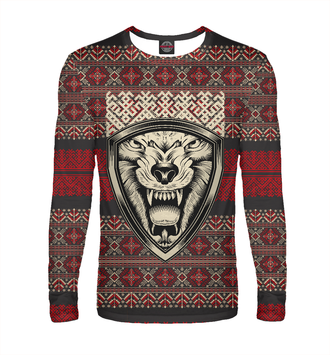 Мужской лонгслив с принтом «Симаргл в узорах»