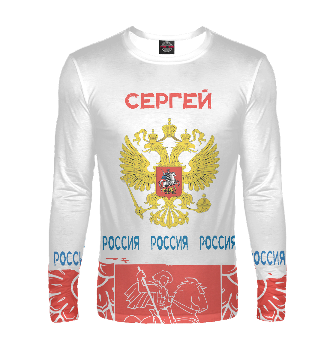 Мужской лонгслив с принтом «Символика РФ Сергей»
