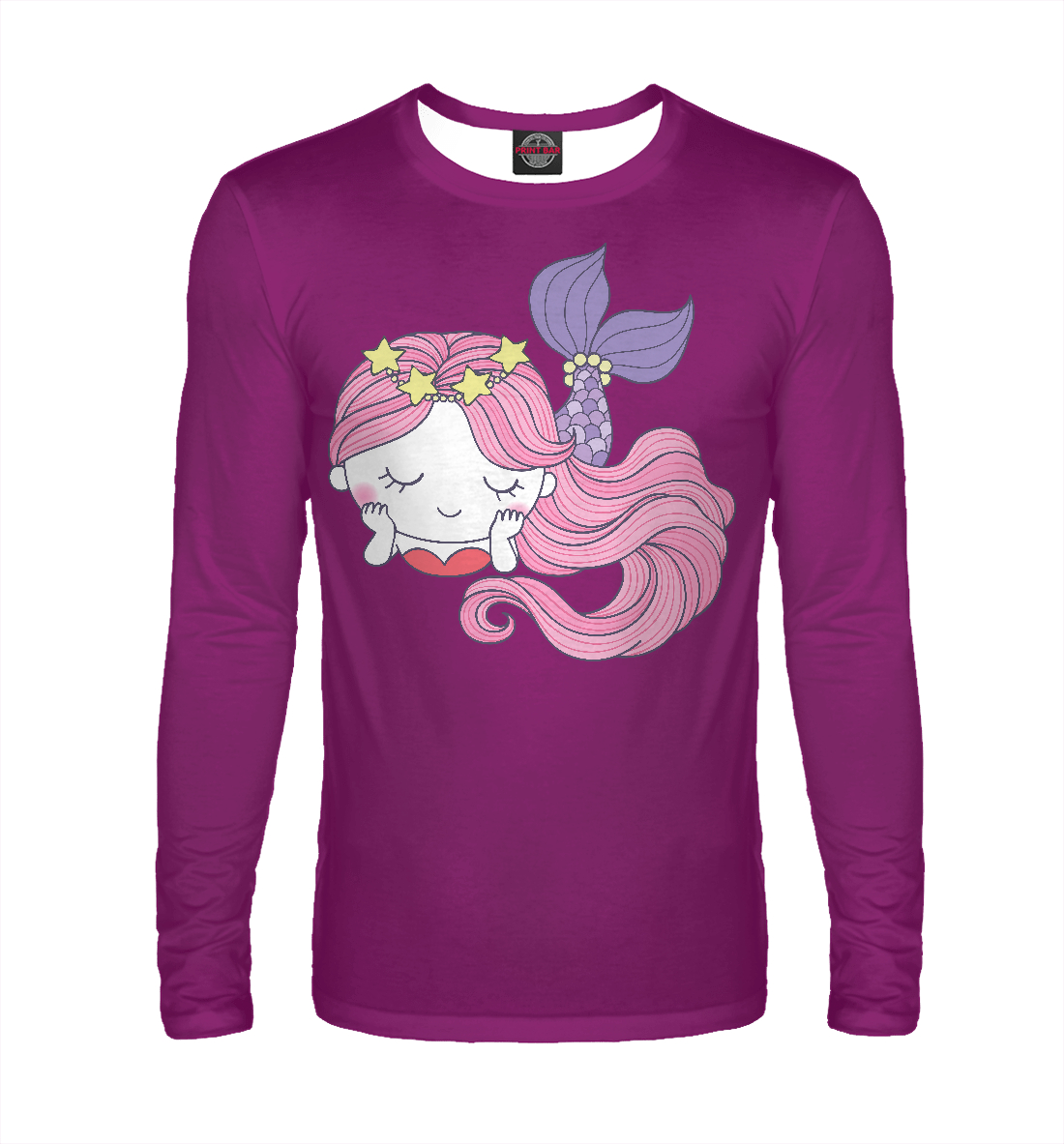 Мужской лонгслив с принтом «Сиреневая девочка-русалка»
