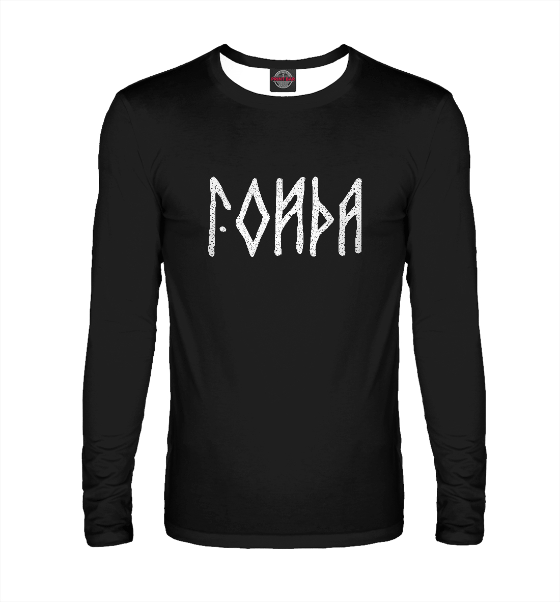 Мужской лонгслив с принтом «Славянский боевой клич текстом рун»