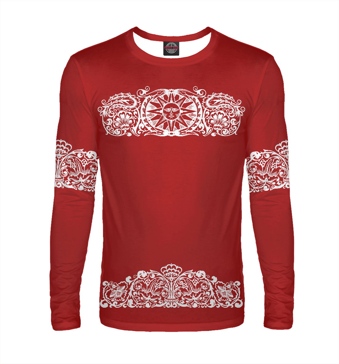Мужской лонгслив с принтом «Славянское Солнце Красное»
