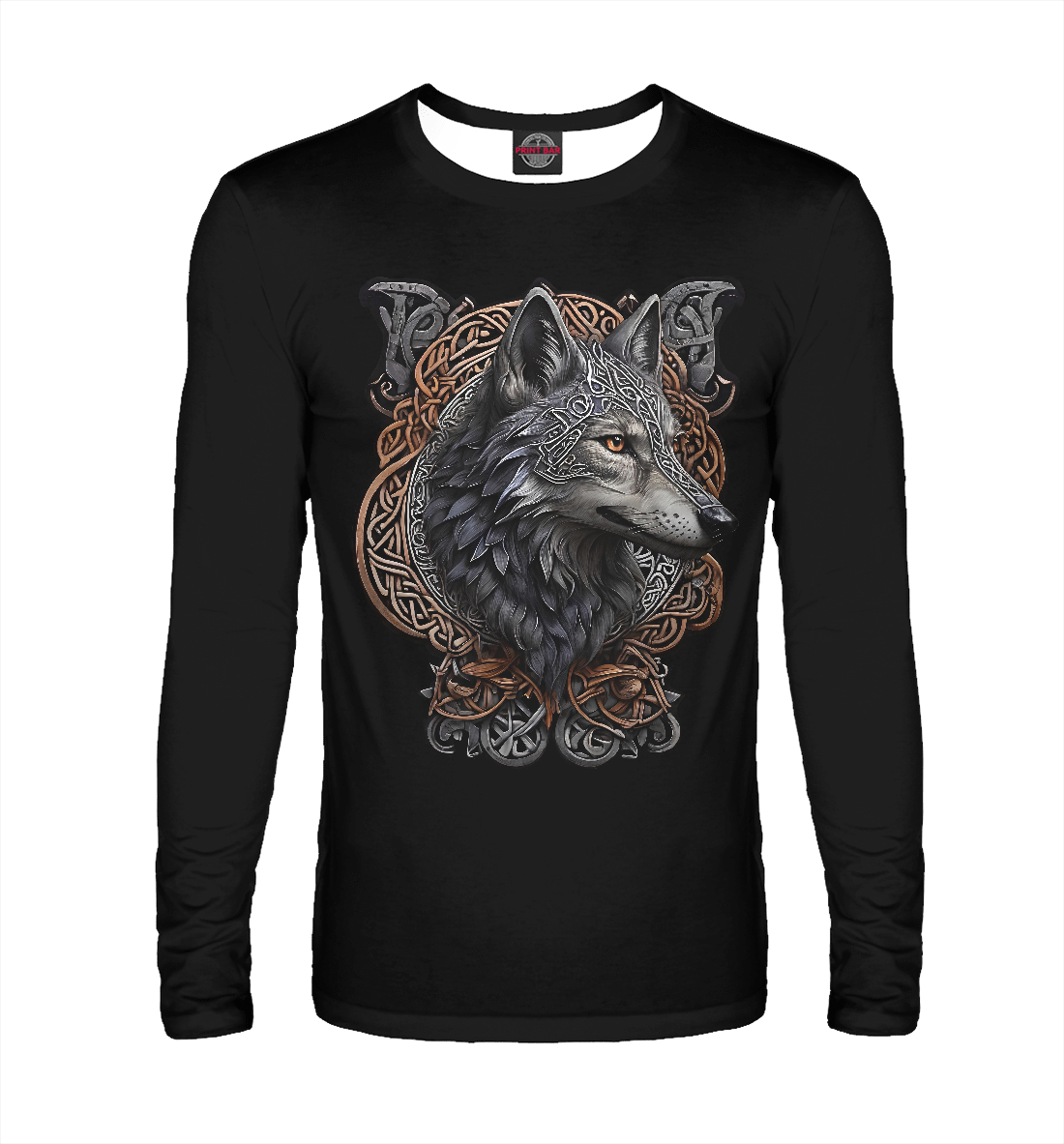 Мужской лонгслив с принтом «Славянской волк в кельтском стиле»