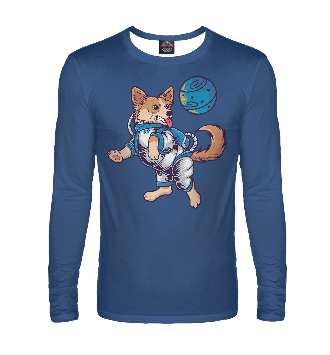 Мужской лонгслив с принтом «Собачка в космосе»