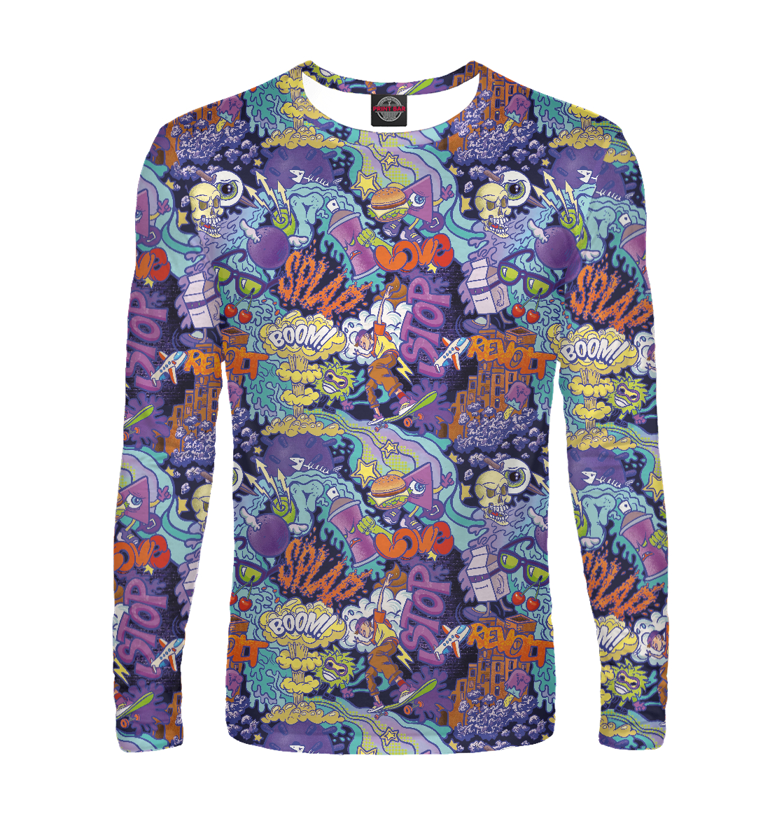 Мужской лонгслив с принтом «Стритарт фиолетовый»
