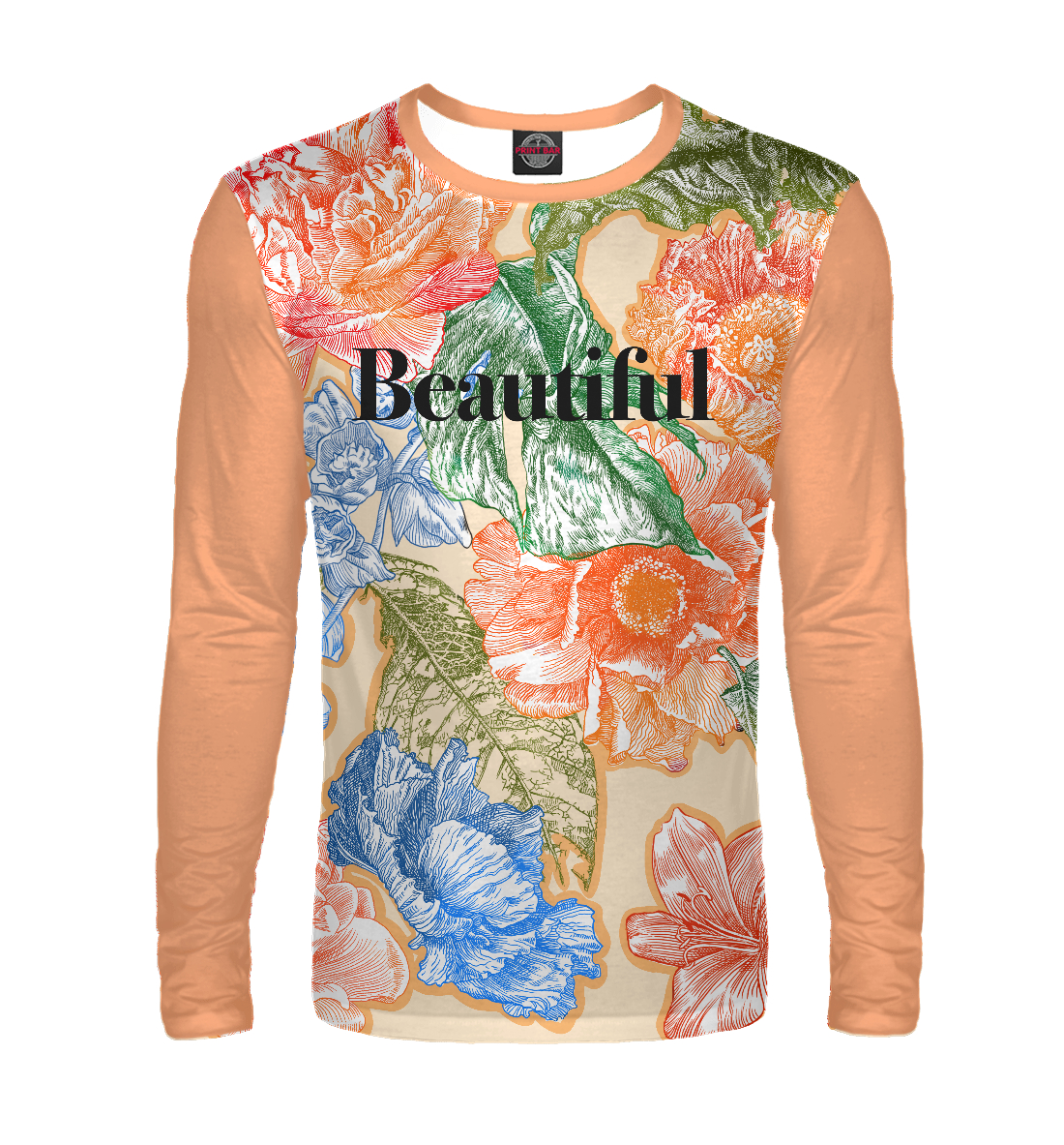 Мужской лонгслив с принтом «Сухоцветы на персиковом фоне»