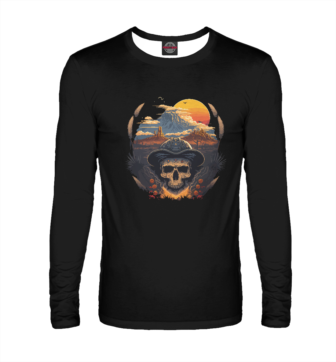 Мужской лонгслив с принтом «SunsetSkull»