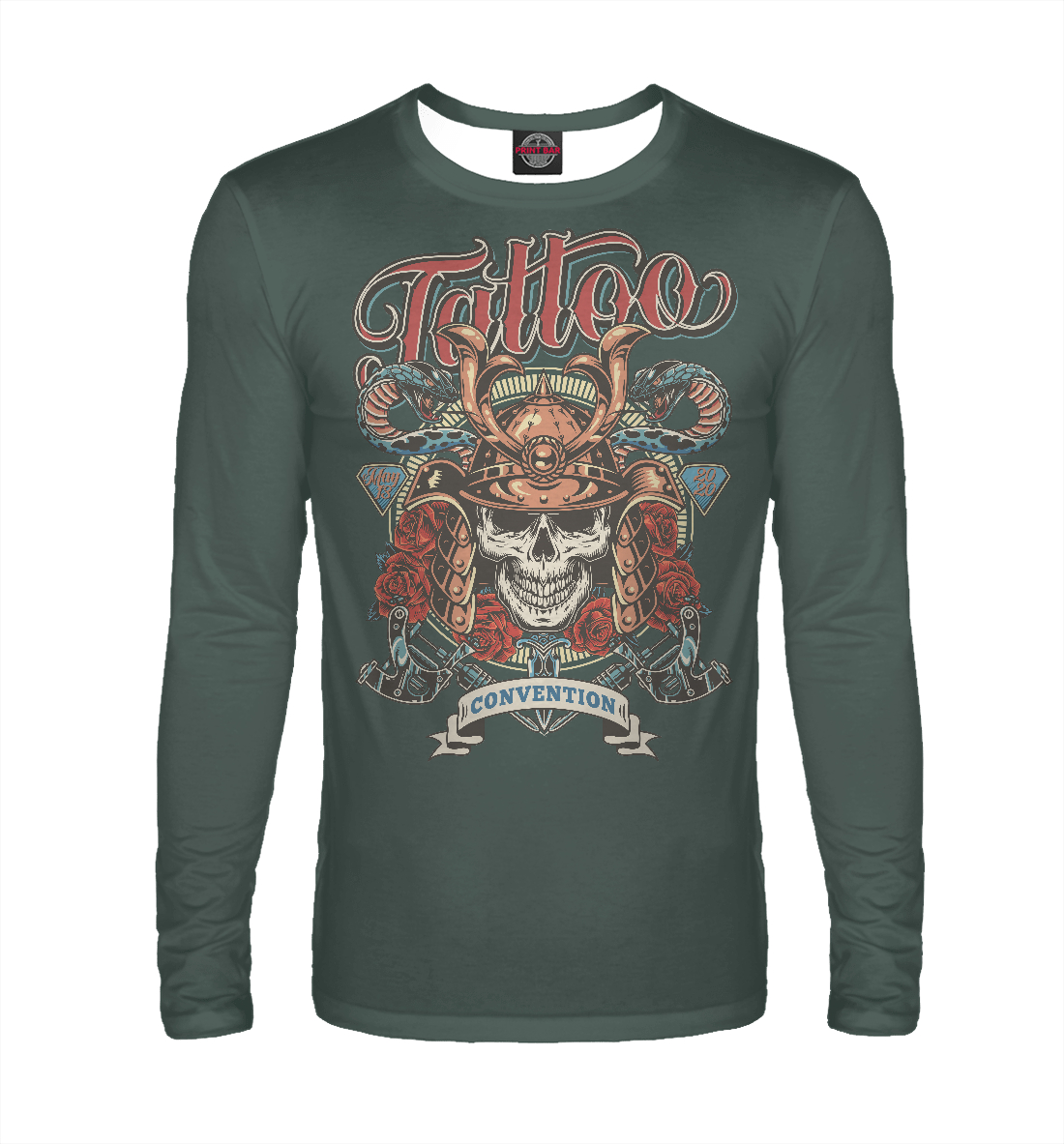 Мужской лонгслив с принтом «Тату самурай»