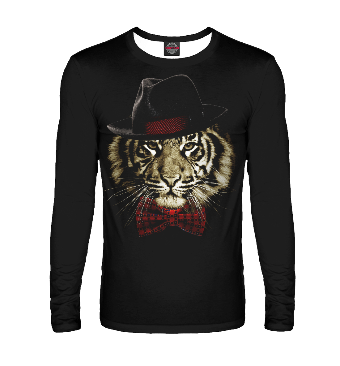 Мужской лонгслив с принтом «Тигр с бабочкой»
