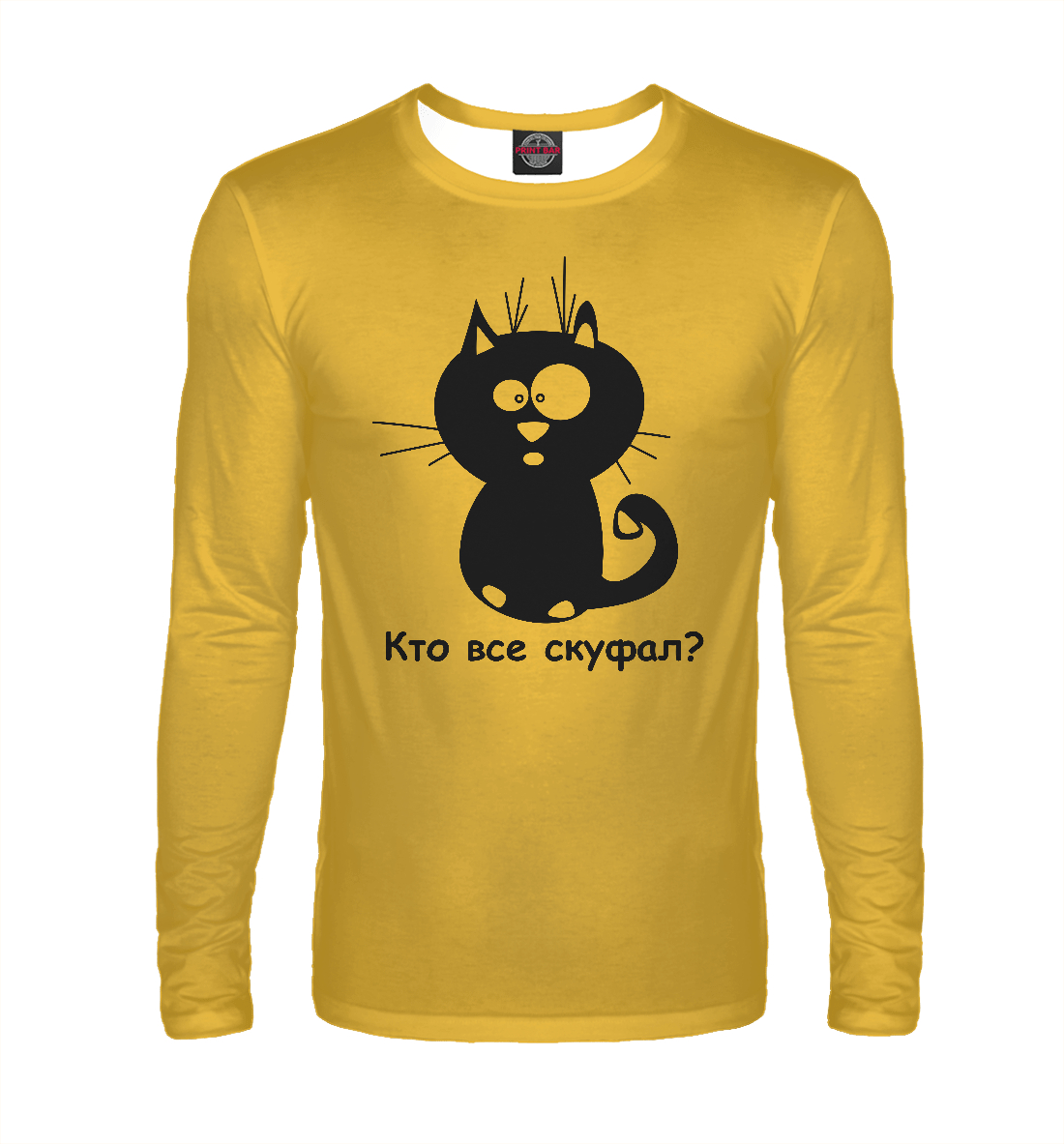 Мужской лонгслив с принтом «Удивлённый кот на жёлтом фоне»