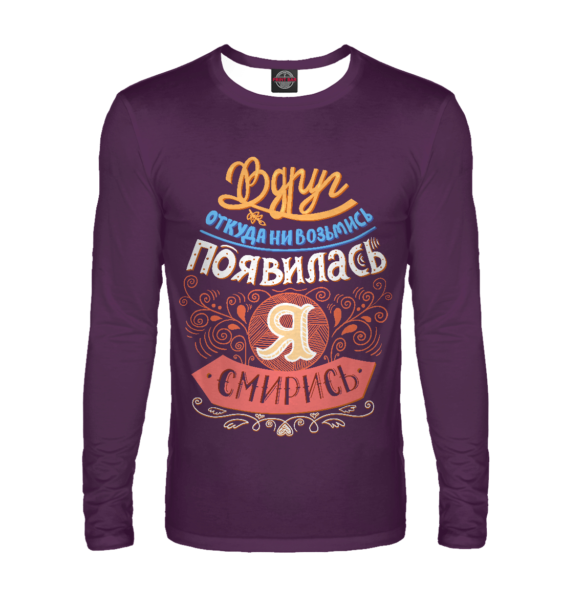 Мужской лонгслив с принтом «Вдруг откуда ни возьмись появилась я»