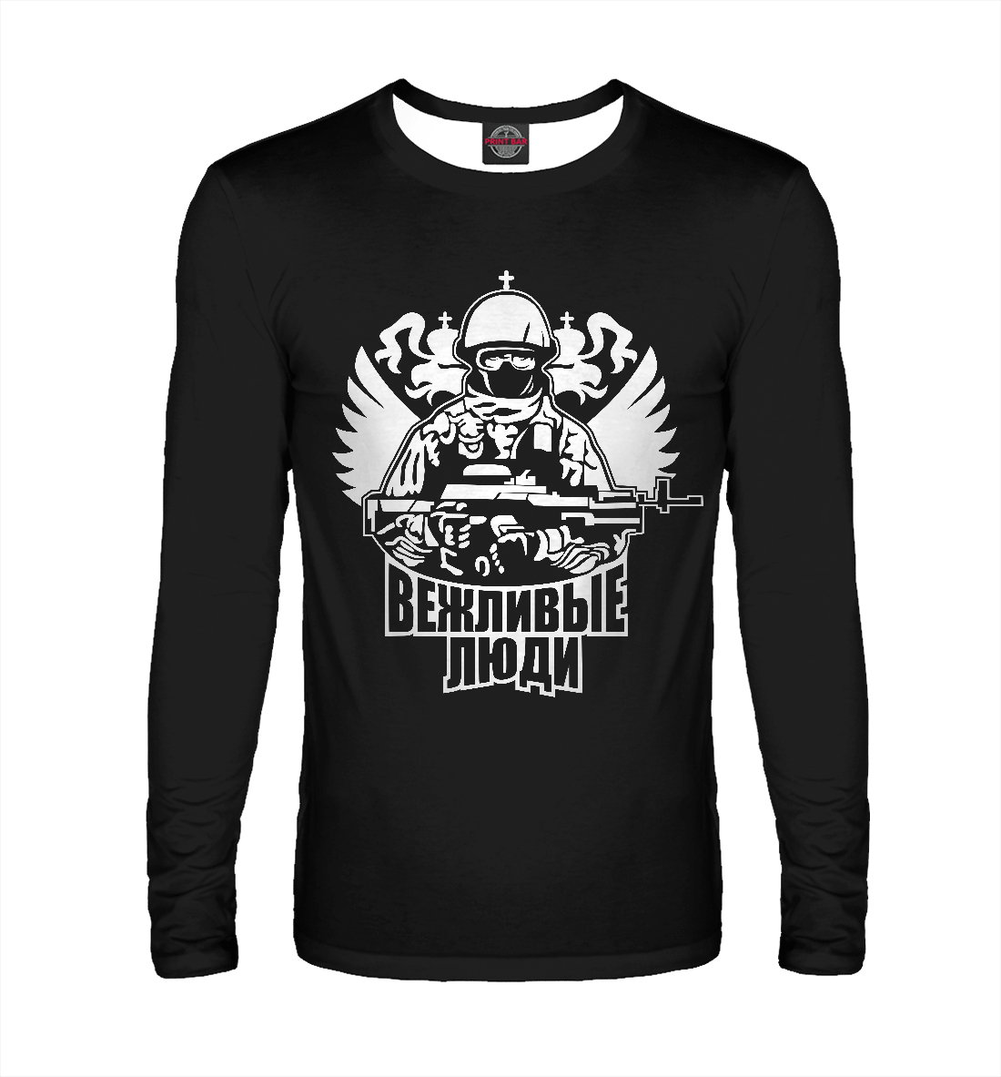 Мужской лонгслив с принтом «Вежливые люди (солдат)»