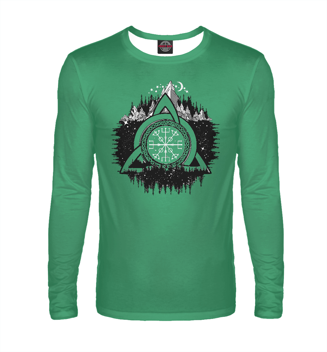 Мужской лонгслив с принтом «Вегвизир Рунический Компас»