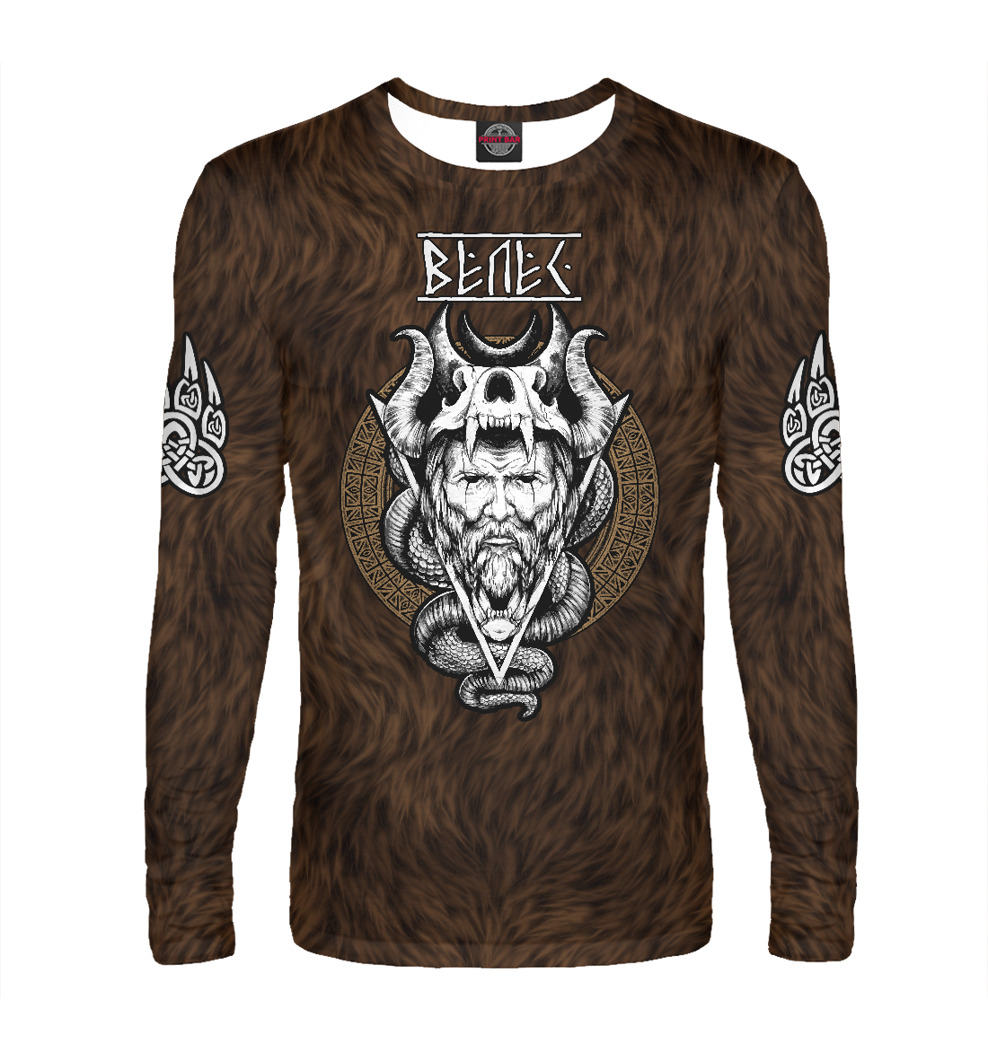 Мужской лонгслив с принтом «Велес (медвежья шкура)»