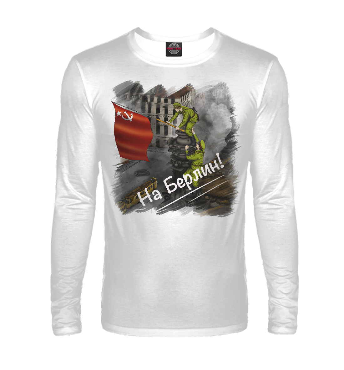 Мужской лонгслив с принтом «Великая Победа. Советский флаг в Берлин»
