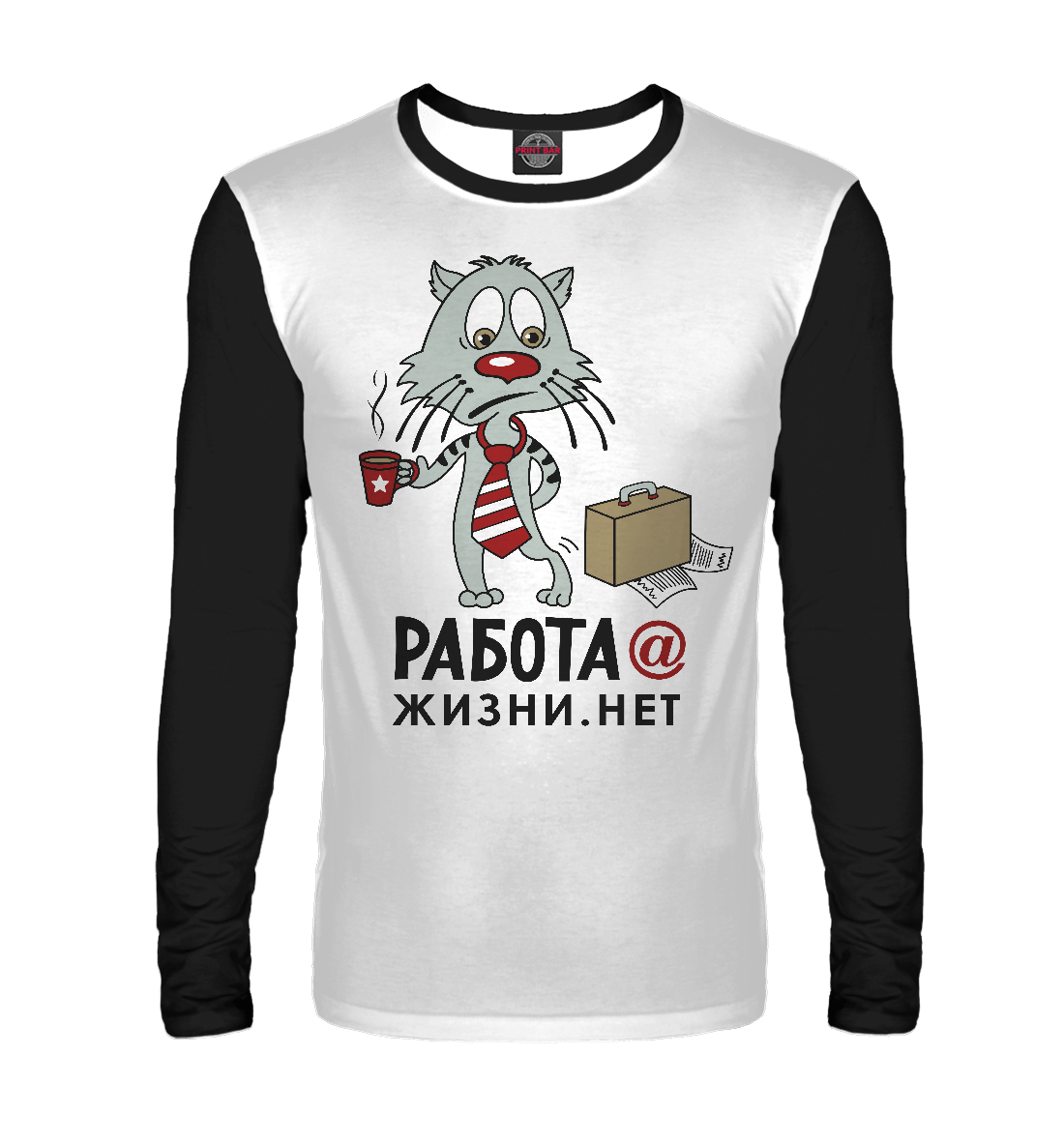 Мужской лонгслив с принтом «Весь в работе кот (ч/б)»