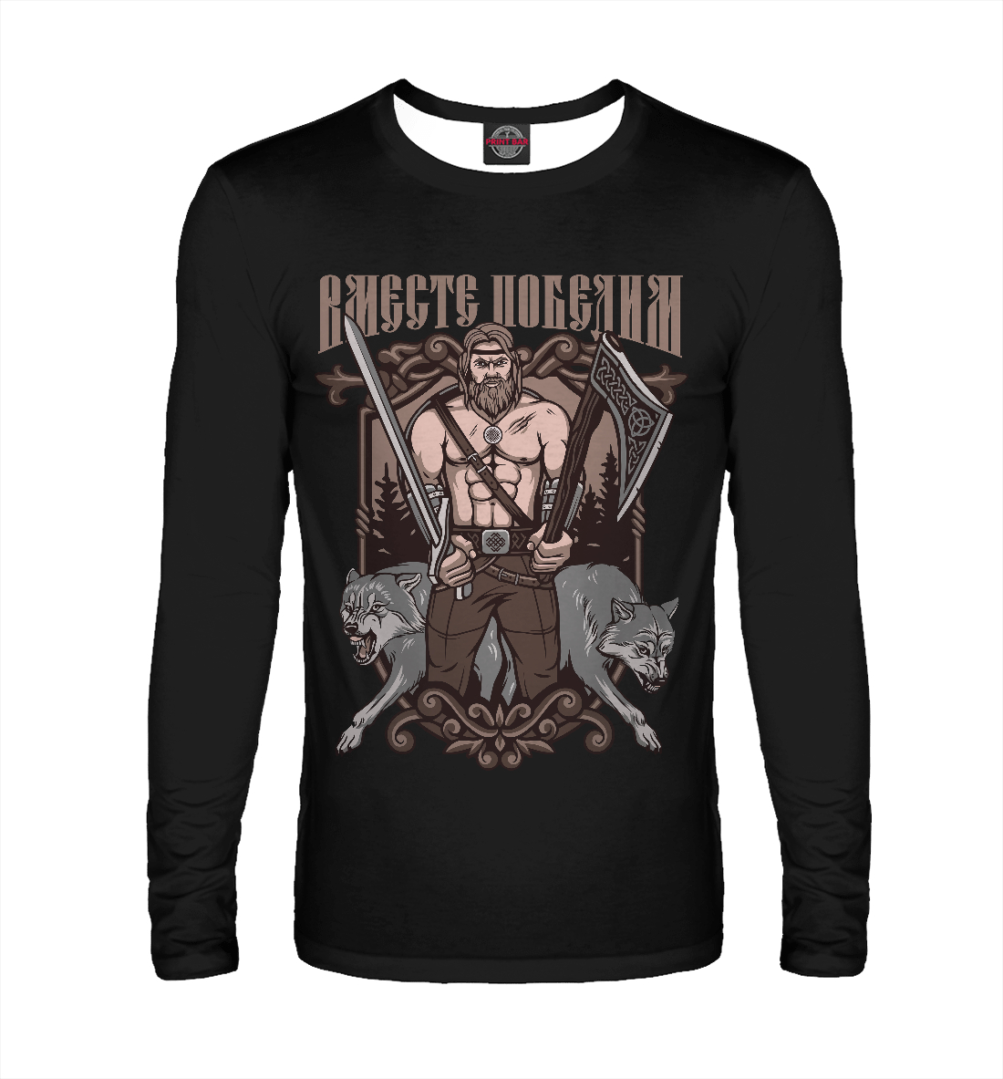 Мужской лонгслив с принтом «Вместе победим»