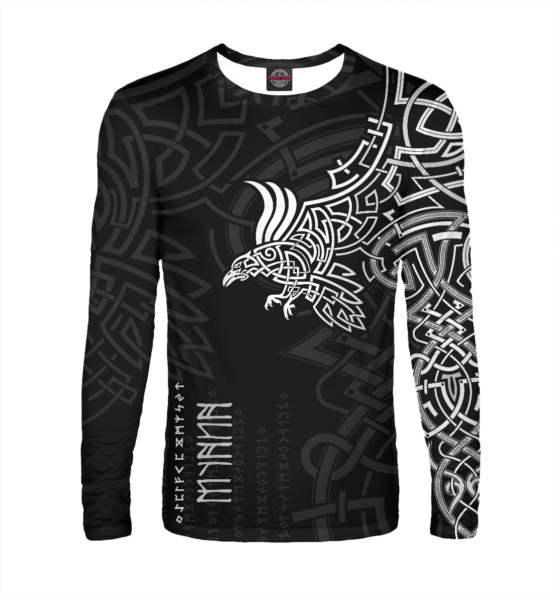 Мужской лонгслив с принтом «Вороны Одина : Хугин и Мунин»