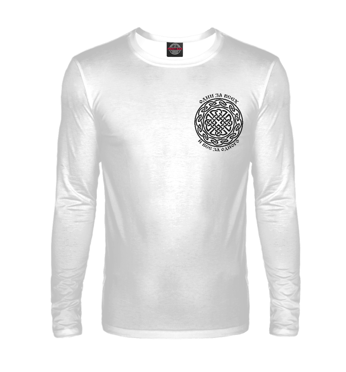 Мужской лонгслив с принтом «Все за одного! (белый фон)»