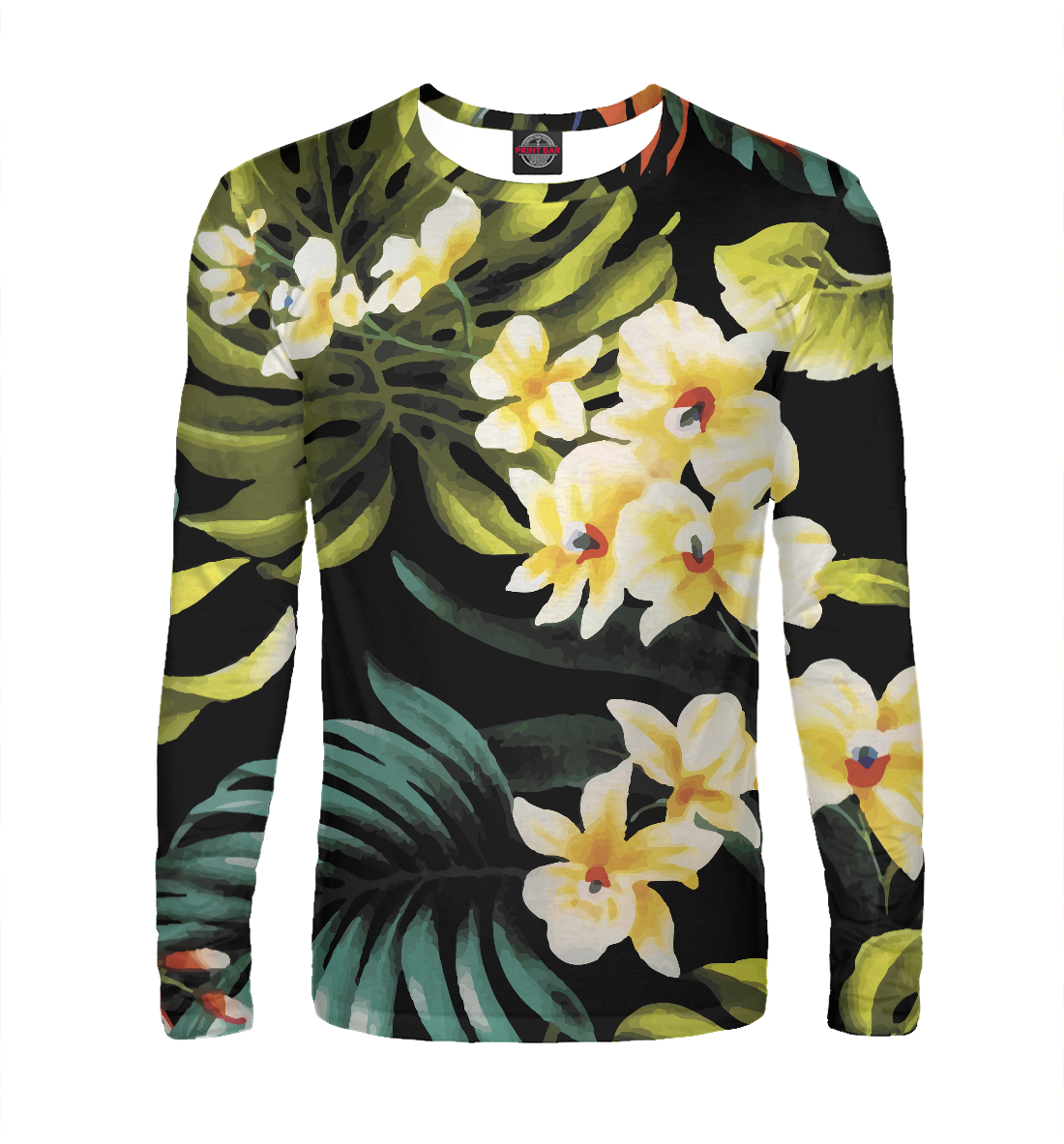 Мужской лонгслив с принтом «Яркие цветы в летнюю ночь»