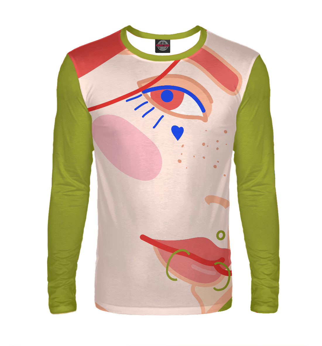 Мужской лонгслив с принтом «Яркий женский портрет с пирсингом»