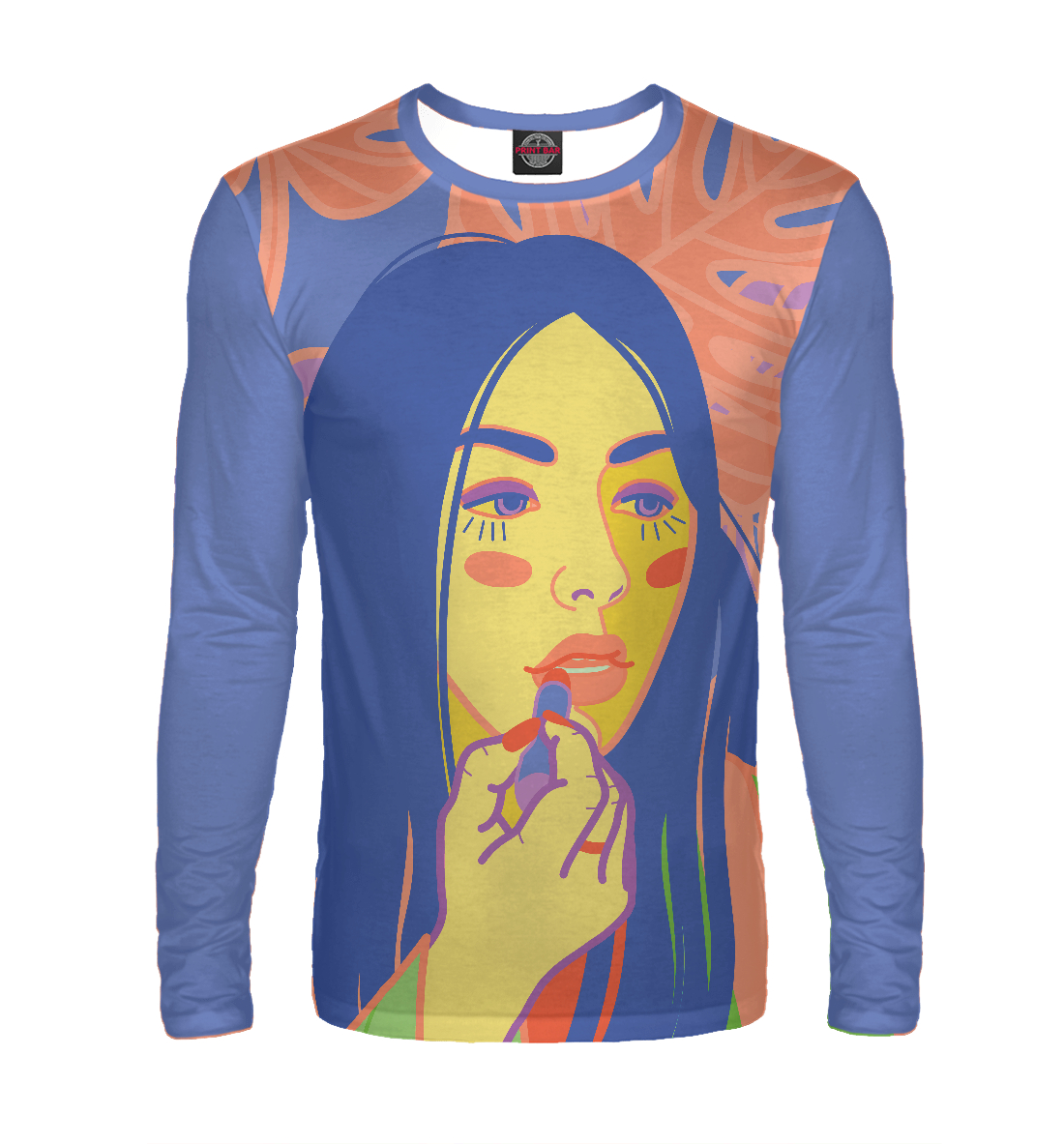 Мужской лонгслив с принтом «Яркий женский портрет в стиле поп-арт»