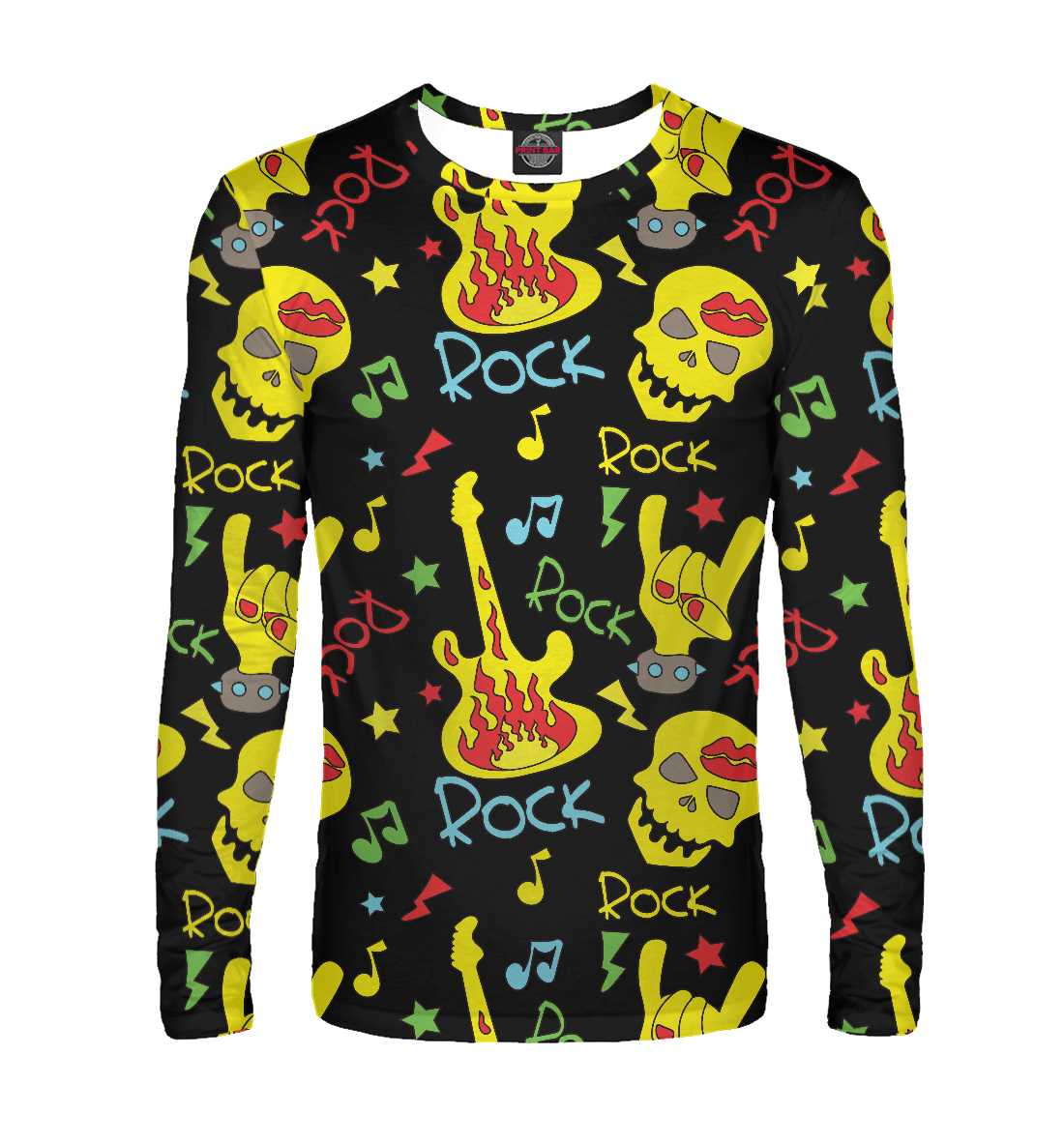 Мужской лонгслив с принтом «Яркий рок узор на черном»