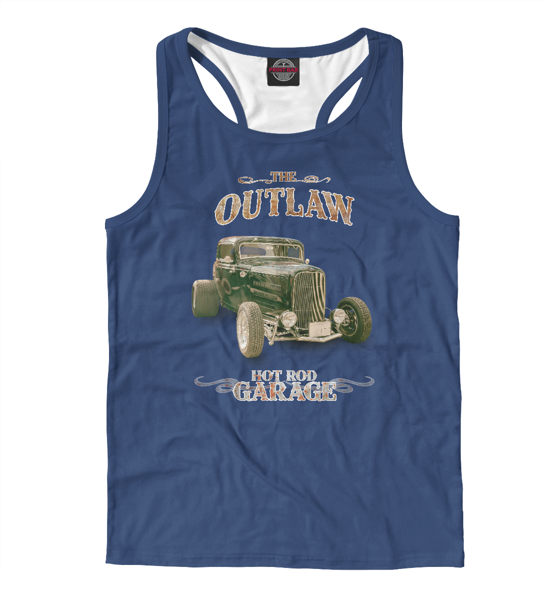 Мужская майка-борцовка с принтом «Американский хот род на синем фоне»