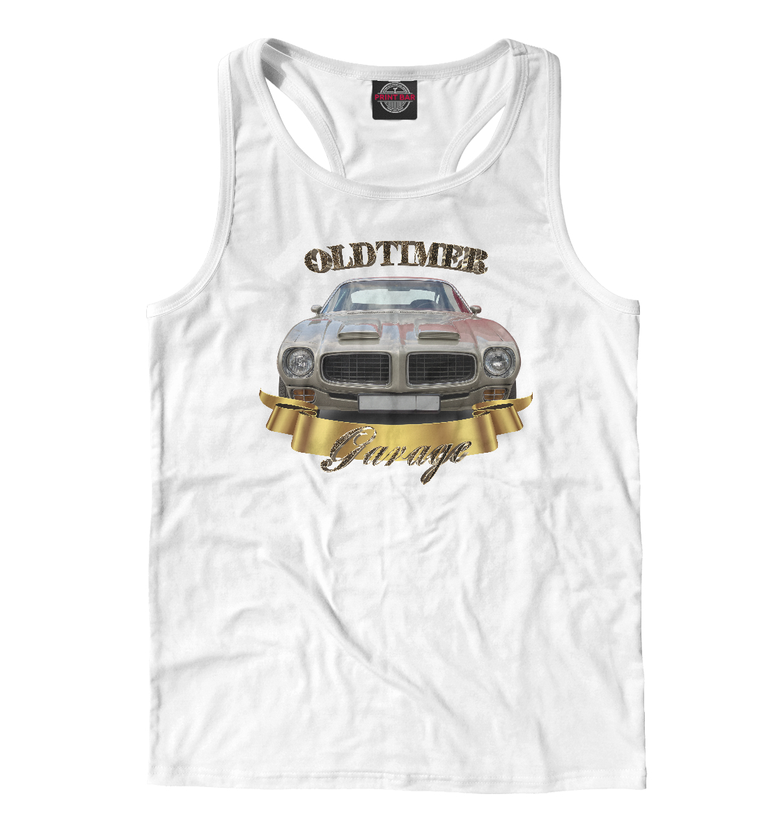 Мужская майка-борцовка с принтом «Американский масл-кар на белом»