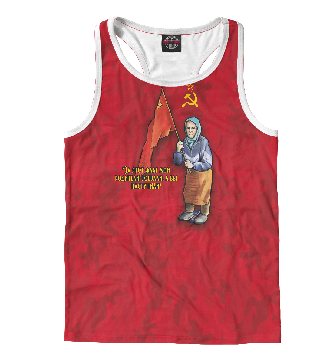 Мужская майка-борцовка с принтом «Бабушка с флагом»