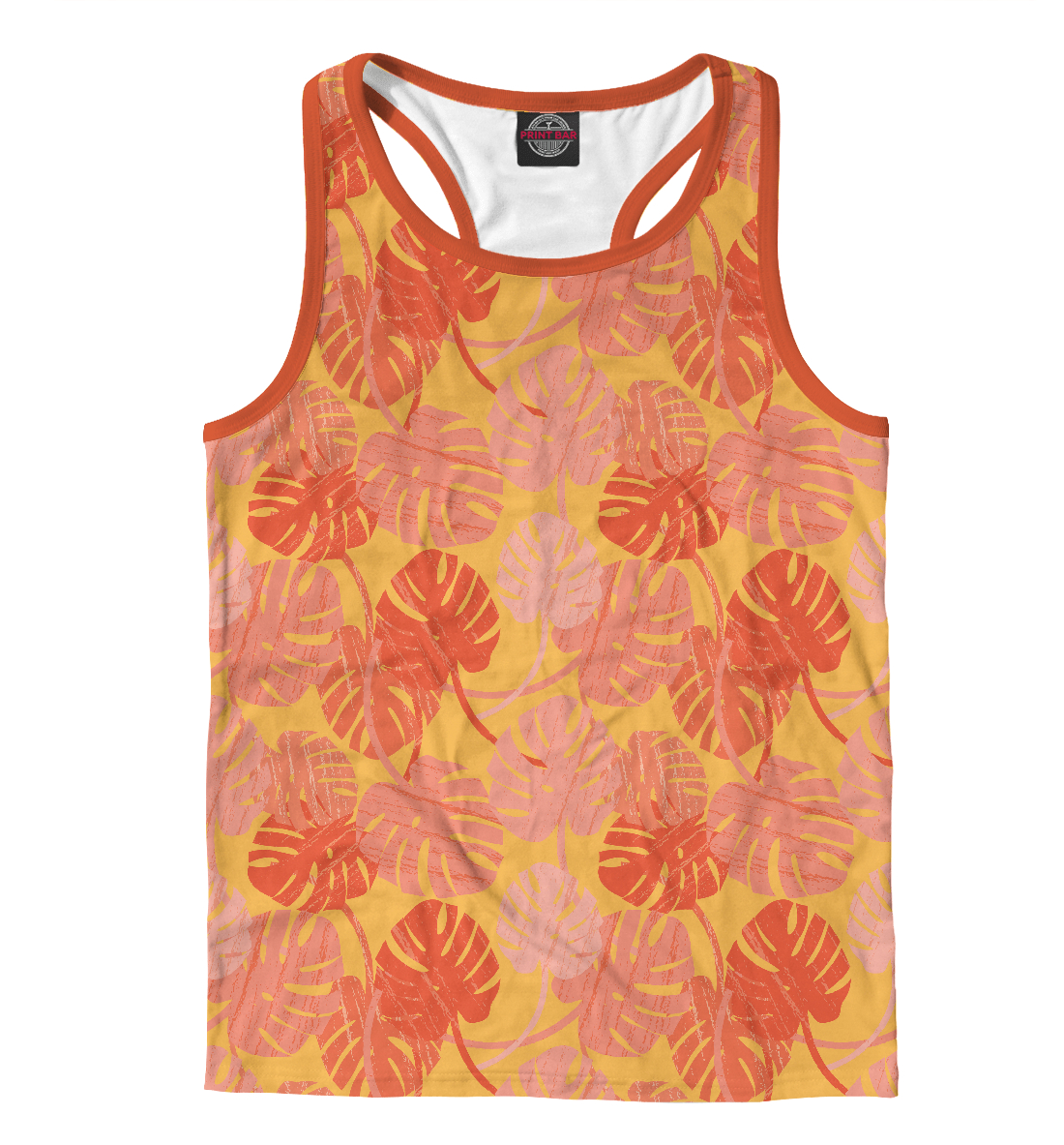 Мужская майка-борцовка с принтом «Большие резные листья на оранжевом фоне»