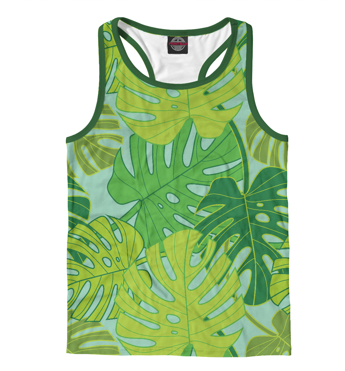 Мужская майка-борцовка с принтом «Большие зеленые резные листья»
