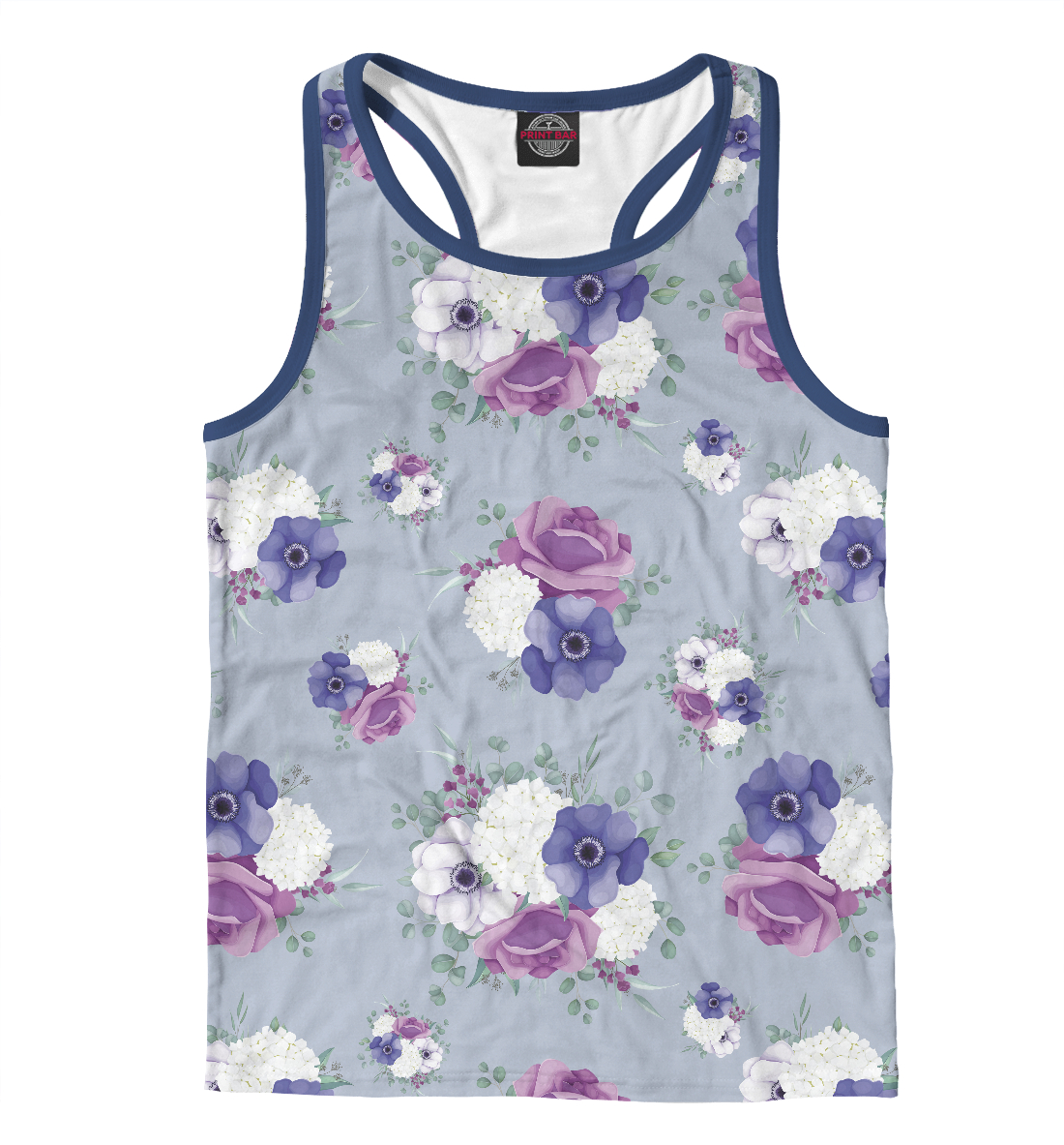 Мужская майка-борцовка с принтом «Бутоны на голубом»