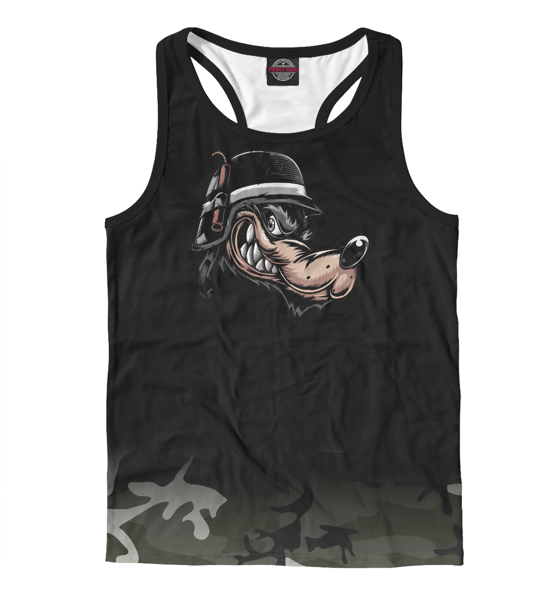 Мужская майка-борцовка с принтом «Cartoon wolf with a dynamit»