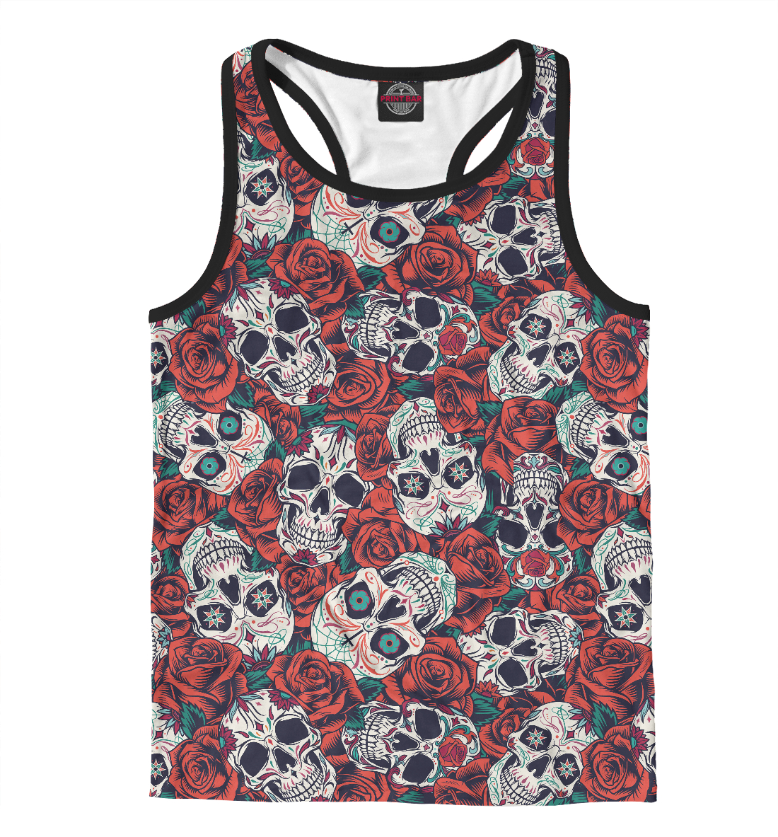 Мужская майка-борцовка с принтом «Черепа в Розах»