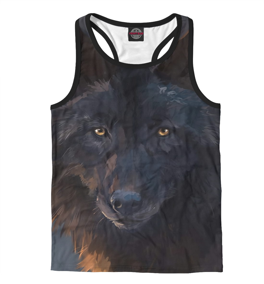 Мужская майка-борцовка с принтом «Черный волк»