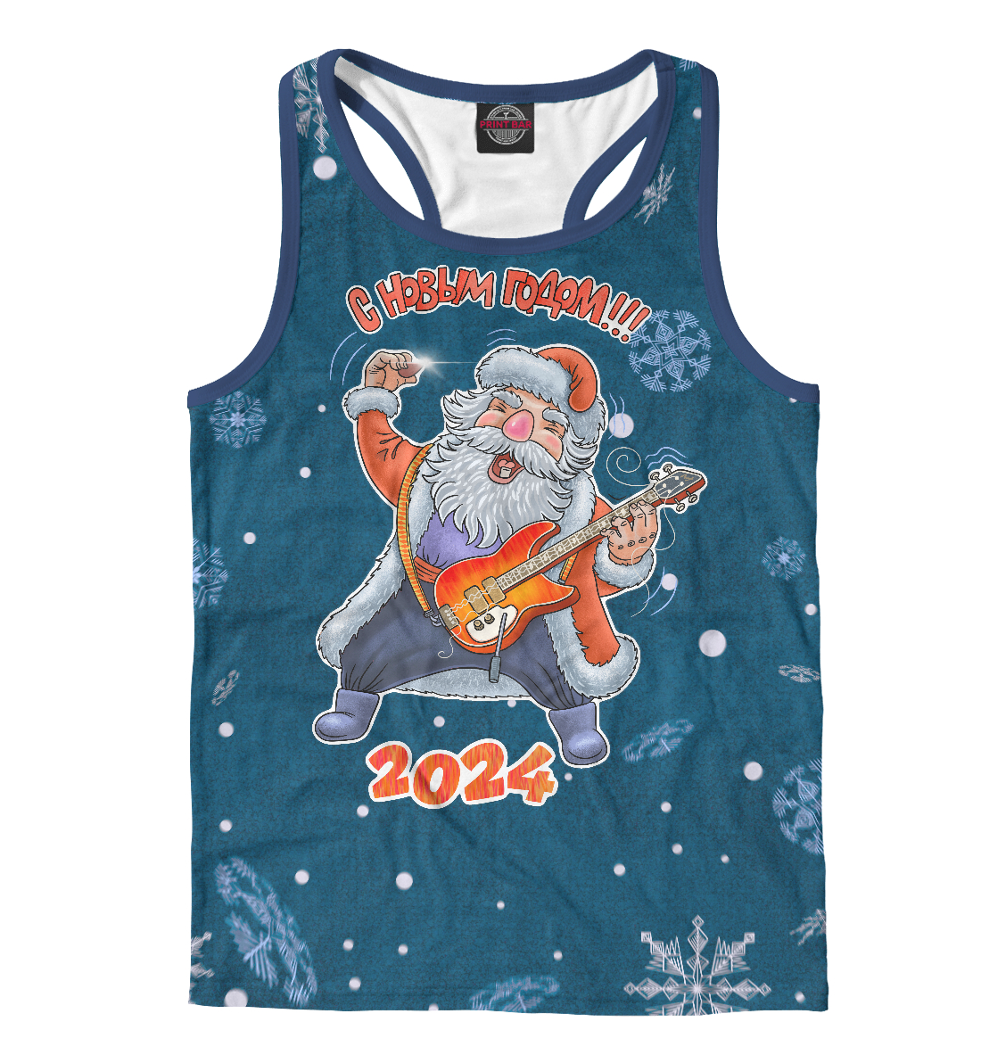 Мужская майка-борцовка с принтом «Дед Мороз играет на рок гитаре»