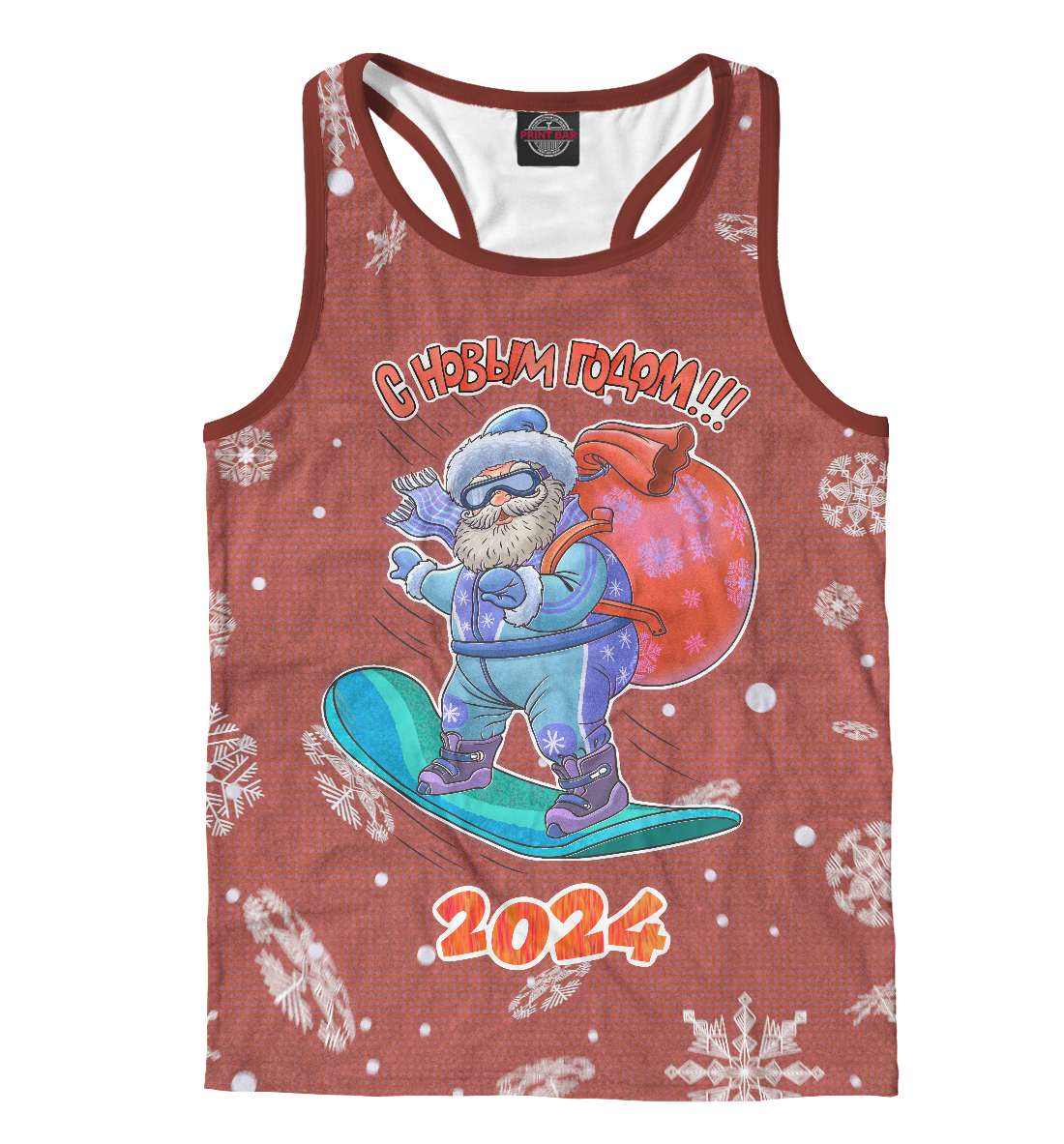 Мужская майка-борцовка с принтом «Дед Мороз на сноуборде»