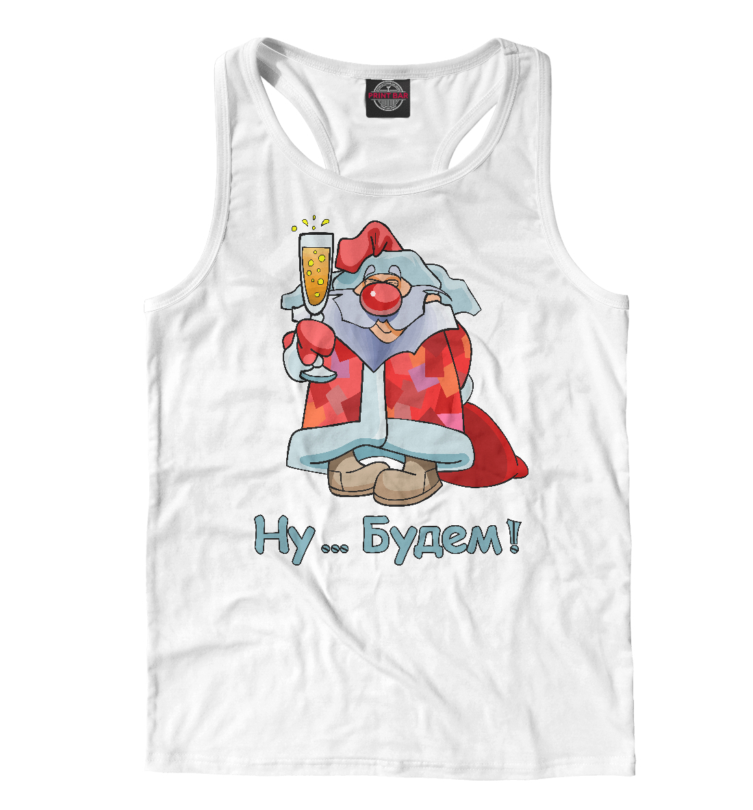 Мужская майка-борцовка с принтом «Дед Мороз с бокалом Ну будем!»