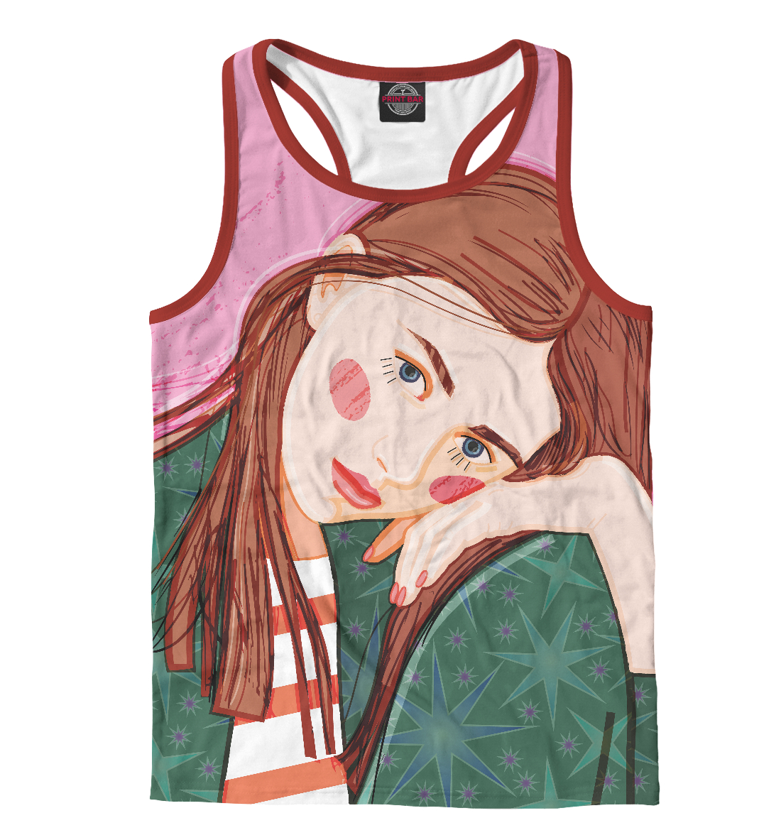 Мужская майка-борцовка с принтом «Девушка в зелёном платье»