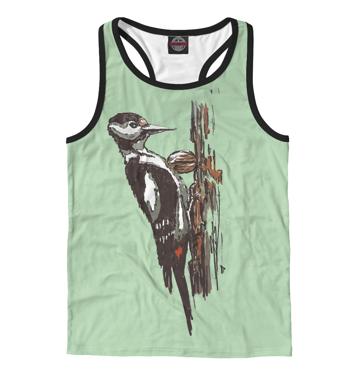 Мужская майка-борцовка с принтом «Дятел (зеленый фон)»